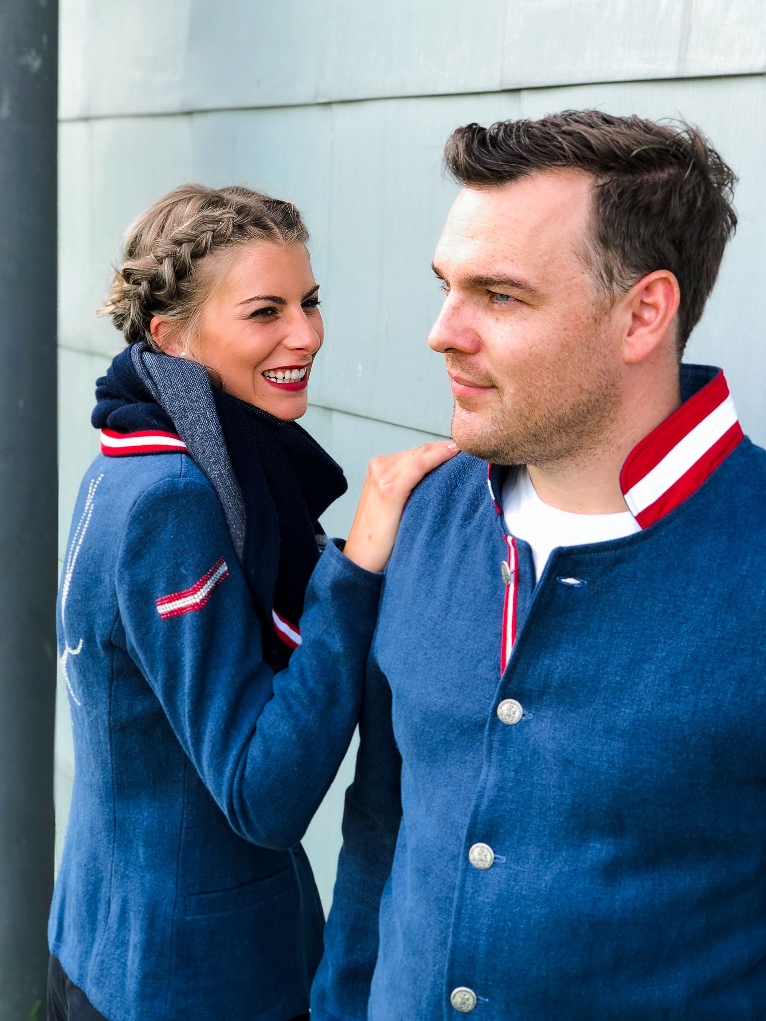 Alpiner Chic: Der Stehkragen in Rot-Weiß-Rot, abgerundet mit edlen Silberknöpfen, verleiht der Jacke einen unverwechselbaren alpinen Mirabell Plummer Style. Dieses Detail macht sie zu einem Statement-Piece, das sowohl in der Stadt als auch in den Bergen eine gute Figur macht.